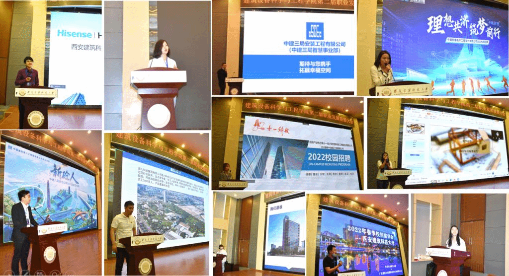 第二届职业发展联盟大会暨2022届毕业生精准就业(机电安装类)专场招聘会如期举行,参加会议的学校教务处副处长袁广亮,环境学院党委副书记、副院长郑成华,学校就业办公室主任屈超,建科学院领导班子成员参加会议,会议由学院党委书记于军琪主持。本次会议邀请了中联西北工程设计研究院有限公司、信息产业电子第十一设计研究院科技工程股份有限公司、中国建筑第八工程局有限公司西北分公司、广东建青工程勘察设计咨询有限公司等17家用人单位参与,累计提供2023届实习岗位和2022届就业岗位200余个,吸引300余名学生参与。