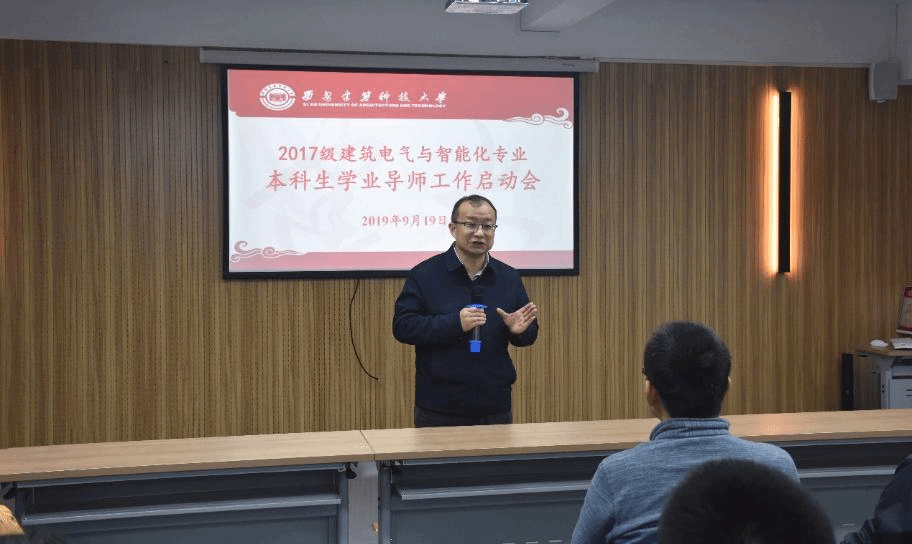 2017级建筑电气与智能化专业本科生学业导师工作启动会在建科学院409会议室举行。学院党委书记于军琪教授、教研室主任闫秀英副教授、党政办主任叶磊老师、教学办主任孟令嫒老师、团委副书记王韶笛老师、团委副书记张雨老师以及建筑电气与智能化教研室教师和2017级全体本科生参加了此次活动。会议由闫秀英老师主持。