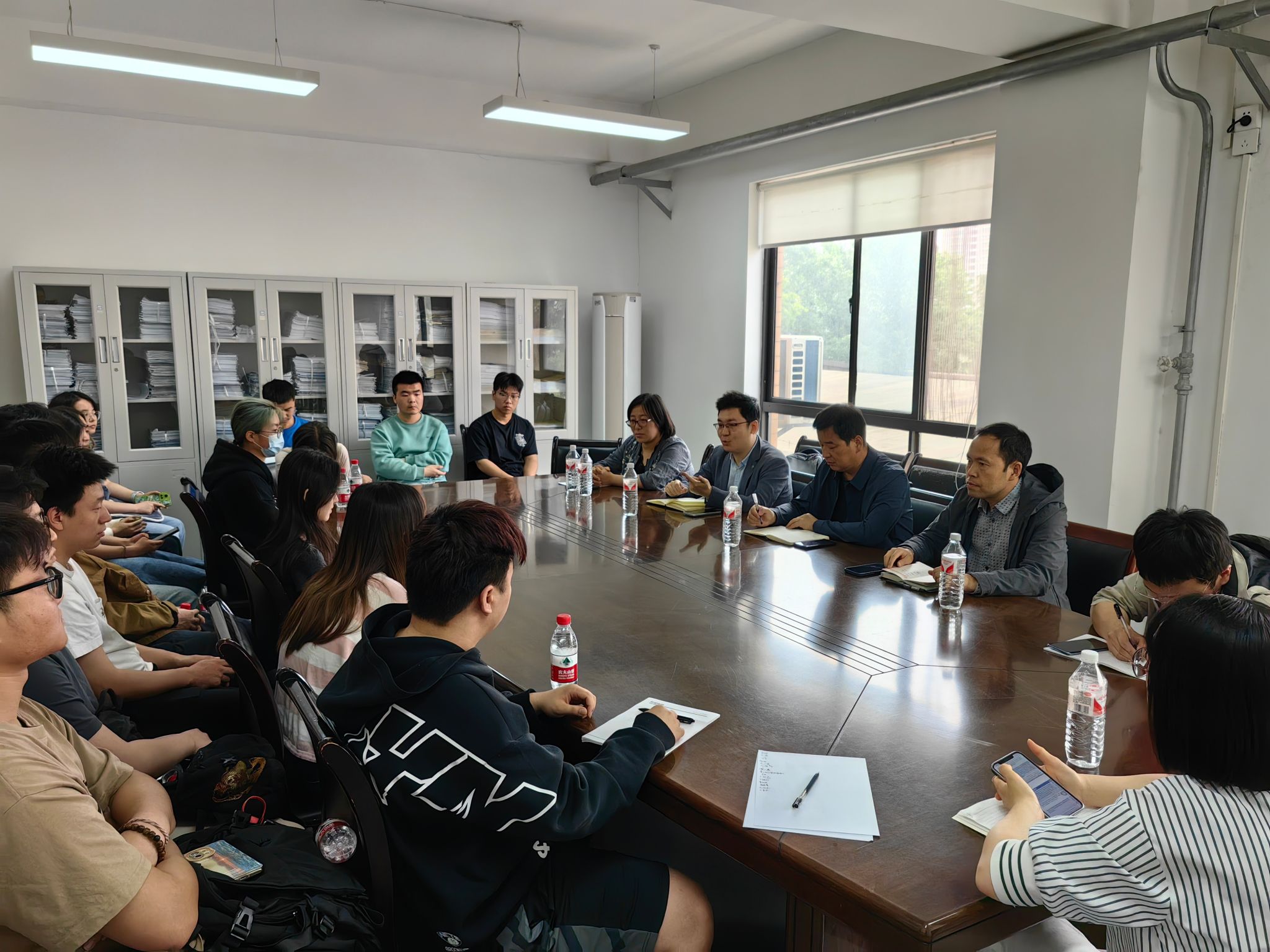 随后,各位同学反映了诸如课程安排、成绩评定、课程设计指导、实习安排、就业等方面的问题,并针对课堂教学、课程设计等提出建议。冯增喜和各位老师认真听取了同学们的意见和建议,并对同学们的疑问及时给予解答。冯增喜对教学及教学管理上的问题要求各位主任和教学秘书及时整改,对于尚需有关职能部门协调解决的问题,明确表示及时反馈给相关部门,并做好追踪。