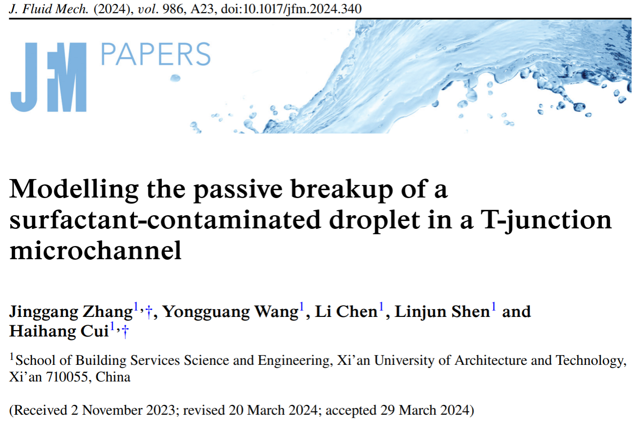 张静刚副教授在流体力学领域研究取得重要进展。研究成果以“Modelling the passive breakup of a surfactant-contaminated droplet in a T-junction microchannel(T型微通道内含表面活性剂液滴破裂的数值研究)”为题在《Journal of Fluid Mechanics》(流体力学杂志,2023年影响因子为3.7)上在线发表。论文第一作者为学院热工流力中心张静刚副教授,第二作者为研究生王永光,合作作者为崔海航副教授、陈力副教授。《Journalof Fluid Mechanics》期刊由英国剑桥大学创办,被公认为流体力学领域最权威的期刊。这是成人抖音