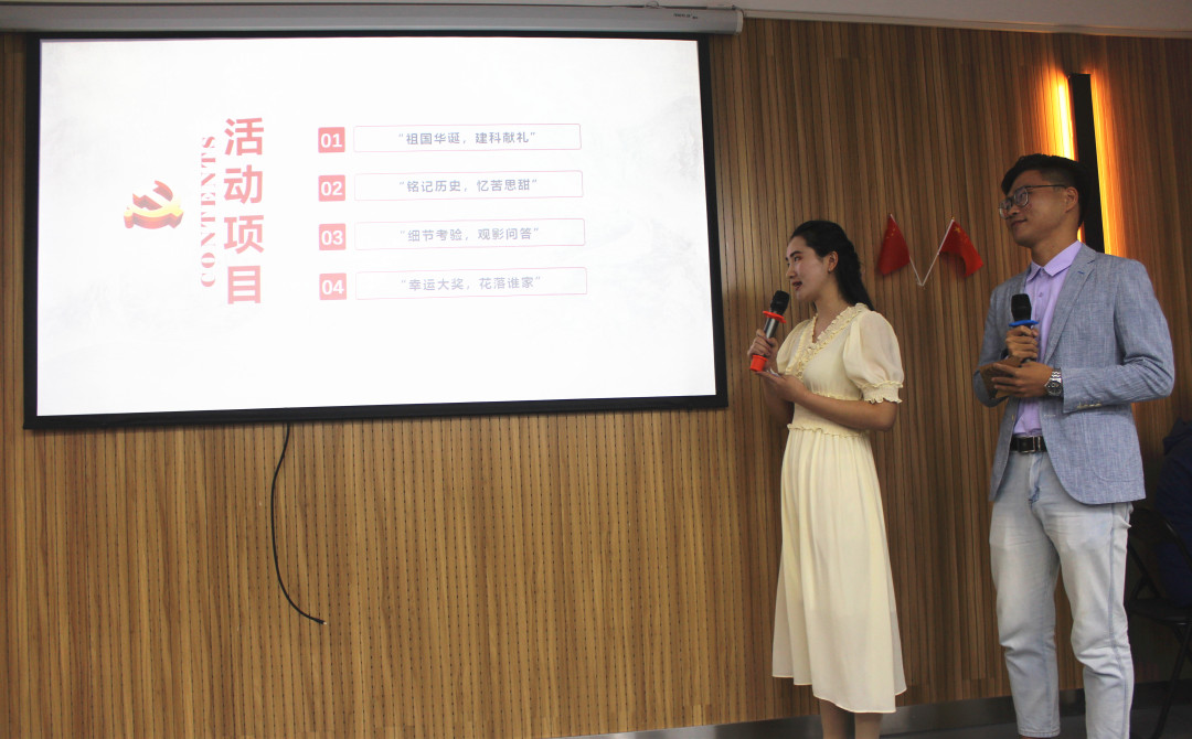 9.29日早8:30,“建国70载”之观影答题活动于建科学院409会议室如火如荼的进行着。本次活动由建科研会研一同学曹庆峰、张苏丹主持。