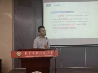 接下来,从学生时代起就参与各类双创竞赛的高然老师的分别从敢于亮剑、点子凝练、团队建设、稿子撰写、附件支撑、答辩准备、实例参考七个方向详细地为大家分享了他参加竞赛的经验,同时,也启发同学们如何创作出好的作品并提醒过程中需要注意的问题。诙谐、幽默、风趣的语言使得现场欢声一片。在现场提问环节,高然老师幽默地解答了同学提出的问题。提醒大一新生在专业知识有所欠缺的情况下,应当积极参加科技竞赛,积累经验,逐年努力,争取更好的成绩。